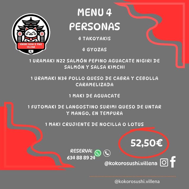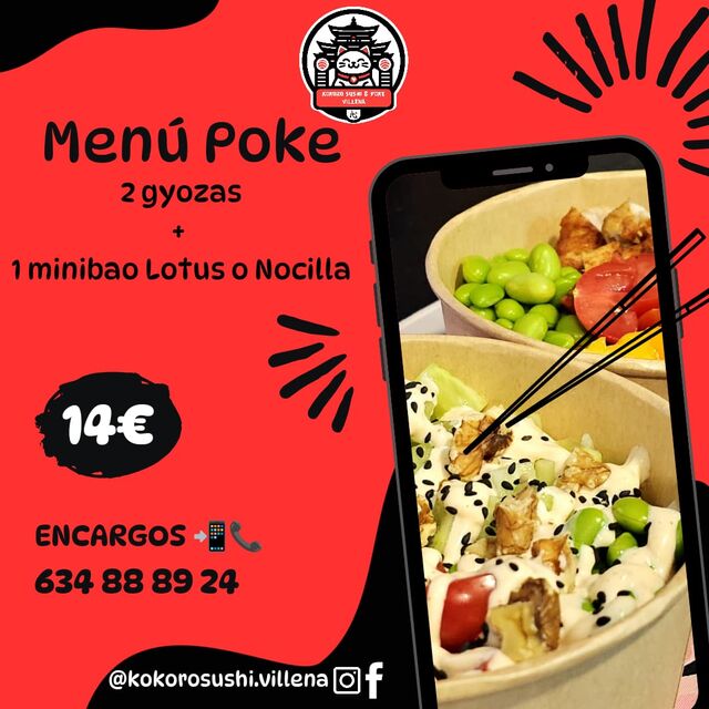 En KOKORO SUSHI & POKE, ubicado en Villena, nos especializamos en ofrecer una amplia variedad de SUSHI Y POKES que se adaptan a todos los gustos y necesidades. Nuestra carta ofrece una gran selección de entrantes, makis, uramakis, futomakis, nigiris, postres y bebidas especiales, así como opciones, veganas, vegetarianas y sin gluten. Además te invitamos a crear tu propio POKE personalizado con ingredientes frescos y de calidad. Ya sea para llevar o para disfrutar en casa con nuestro servicio a domicilio. En Kokoro buscamos ofrecerte una experiencia culinaria única, llena de sabor y adaptada a tus preferencias.